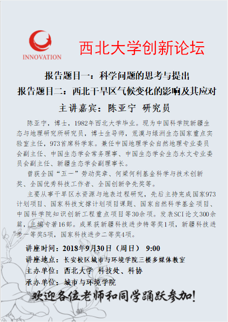 买球官方网站创新论坛 陈亚宁研究员讲座