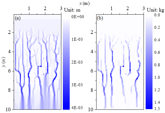 图1细沟发育坡面径流深与累计侵蚀量的空间分布: (a) 径流深; (b) 累计侵蚀量