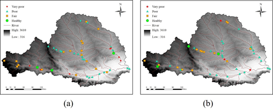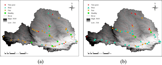 渭河流域B-IBI评价结果:(a)夏季;b)秋季