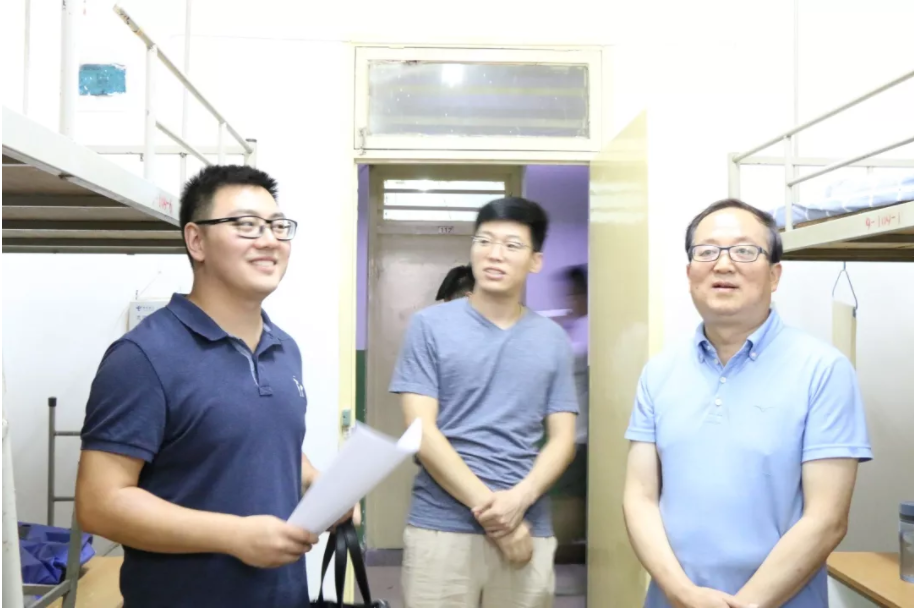 9月4日下午17点30分,买球官网党委书记张卫锋,党委副书记田怡,辅导员李启超、张文卓、张扬进入学生公寓,对18级新生进行亲切慰问。