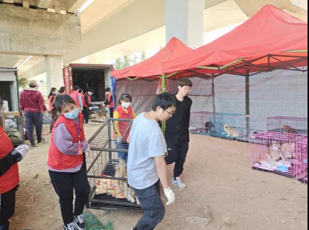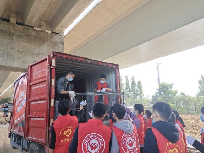 10月16日,买球官网诚志爱心社联合学院团委志愿服务部组织了共计26名志愿者前往红石榴基地进行援助,志愿者们与工作人员一起完成了笼子、狗粮、猫粮等物品的搬运和小动物的转移以及场所的清理任务,为小动物们能早日转移到舒适的环境献一份力量。