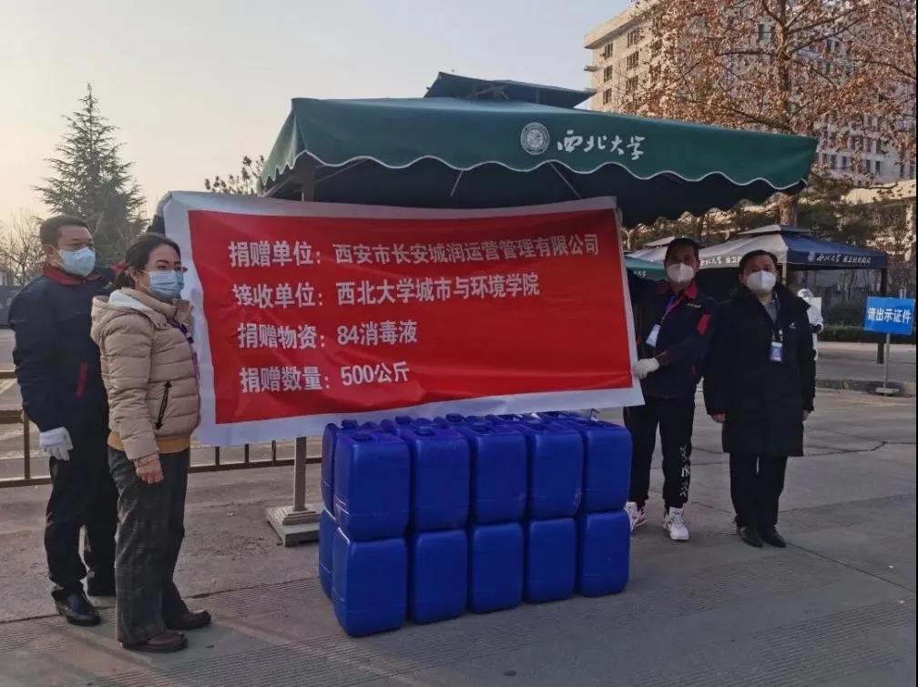 学院合作单位-西安市长安城润运营管理有限公司捐赠84消毒液500公斤