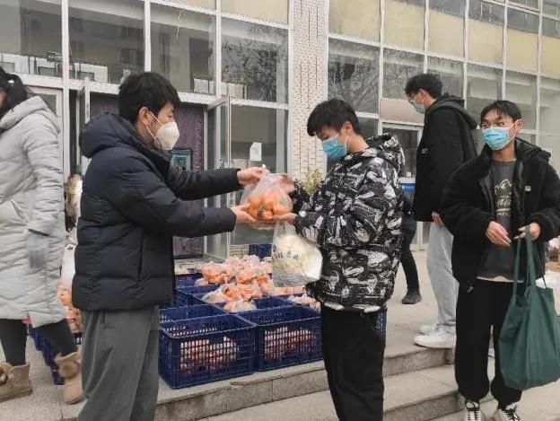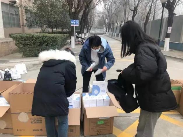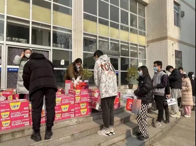 学院党政领导、在校辅导员、学生志愿者为学生分发爱心防疫物资