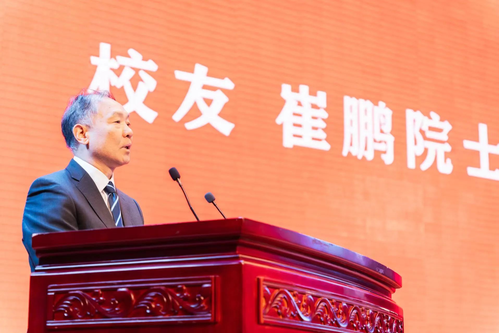 崔鹏院士作为杰出校友代表讲话,深情回顾了西大的求学岁月,感慨地说:“虽然我已离开学校四十多年,但母校永远是我生命中最珍贵的青春记忆!正是在母校接受了扎实的基础课程学习,我才有完成这些工作的源动力,也是我对母校交上的一份答卷。”并表示“作为一名有着深厚西大情怀的校友,我时刻关注着学校的发展,为母校的每一点成绩而兴奋。”崔鹏院士在讲话中表达了对母校的感恩,并祝愿学校“积历史之厚蕴,乘时代之春风,更展宏图,再谱华章。”