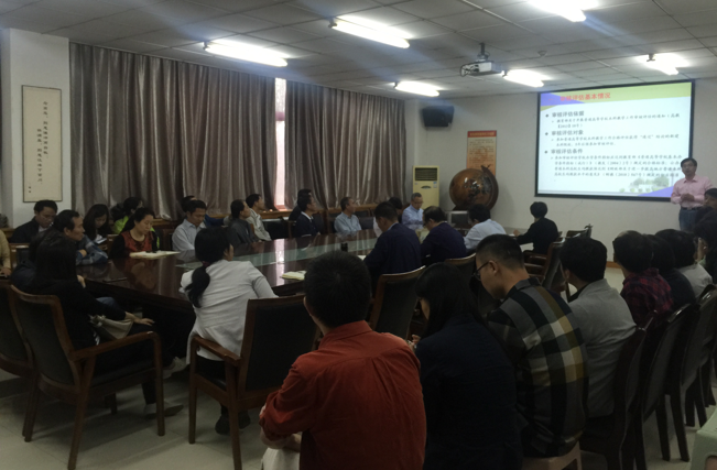 会上,由主管教学的副院长宋进喜从本科教学工作审核评估依据、对象、条件、指导思想、总体要求、目标、重点与核心内容,以及学校审核评估工作方案等方面做了全面的解读,接着对学校工作要求、学院评估工作部署与进展情况及存在问题做了详细说明,并就进一步完善修订人才培养方案、加强数据核准与网上填报、完成自评报告撰写、整理审核评估支撑素材、营造育人文化氛围等重点工作做了具体安排。