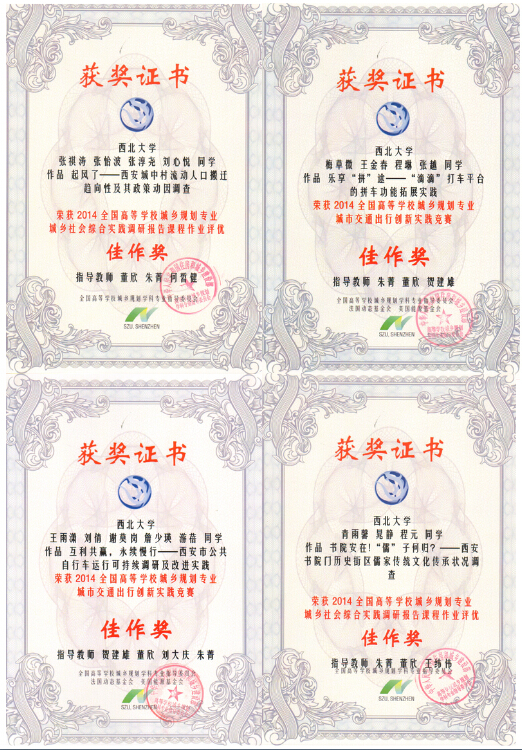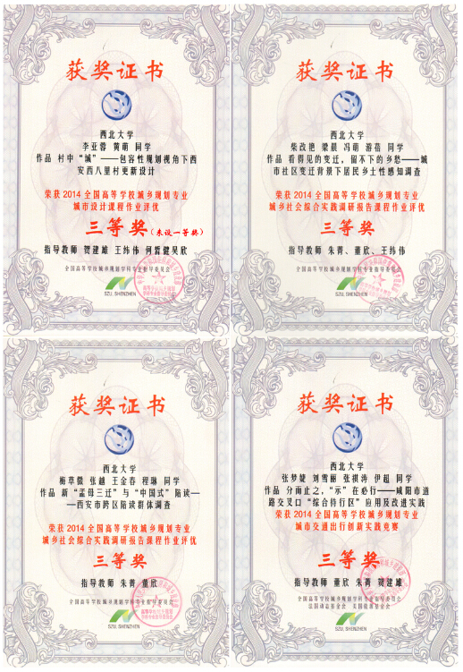 近年来,在学校和院系的大力支持下,城乡规划专业在本科生学科竞赛方面取得了长足的进步。在全国性的专业学科竞赛中共获得一等奖2项、二等奖1项、三等奖近20项的好成绩,在西北及西部地区名列前茅,产生了广泛的社会影响,有力推动了我校城乡规划专业教育教学水平的不断提升。