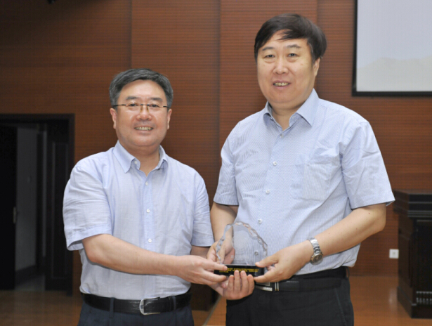 郭立宏校长出席报告会并为傅伯杰院士颁发“杨钟健学术讲座”纪念牌。