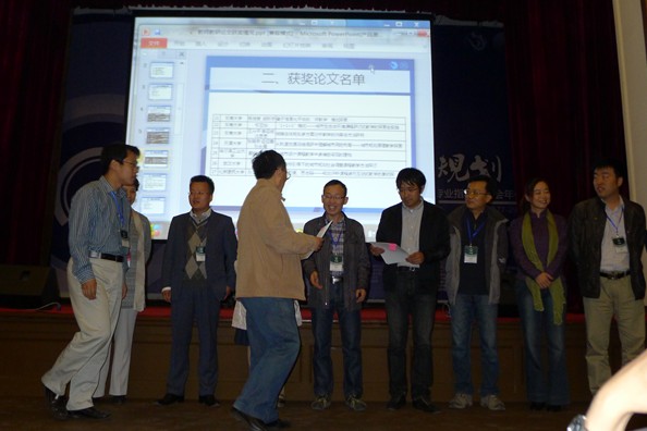 领取教师优秀论文获奖证书(右五为买球官网教师李建伟)