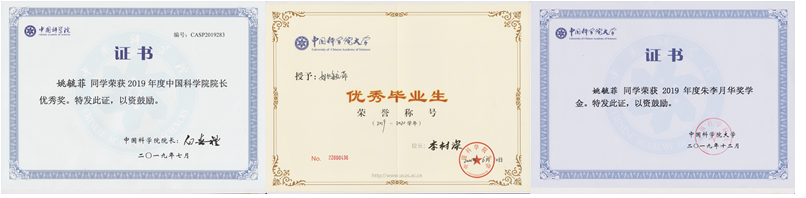 姚毓菲博士获得的部分奖励