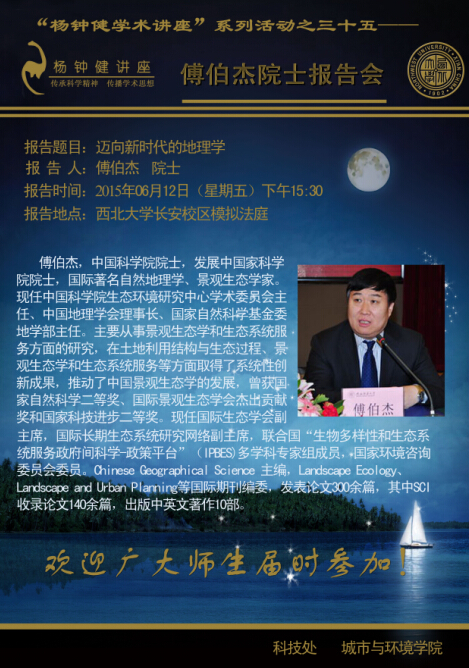 “杨钟健讲座”系列活动之三十五——傅伯杰院士报告会通知