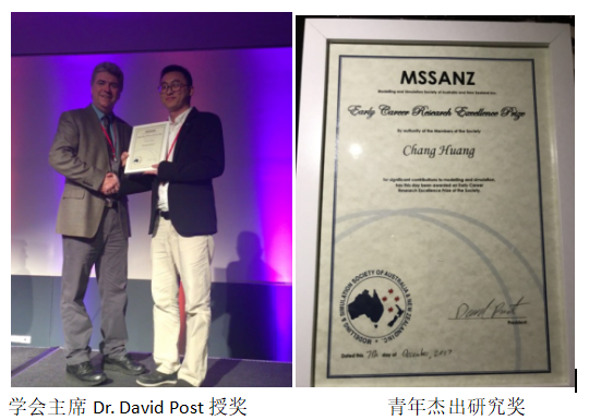 澳大利亚新西兰建模与模拟学会成立于1974年,目前已有来自50多个国家和地区的1000余名会员,涉及的领域包括水文、农业科学、大气科学、生态等。为表彰取得优异成绩的会员,学会先后设立了Biennial Medals和Early Career Research Excellence Awards等奖项。其中,Early Career Research Excellence Awards 每两年颁发一次,奖励3-6名在环境建模与模拟领域取得突出成果的青年科学家。买球官网黄昌副教授获得Early Career Research Excellence Awards(青年杰出研究奖),是本次5名获奖者中唯一的亚洲获奖者,也是该奖项自2001年设立以来,中国大陆高校科研人员首次获此殊荣。