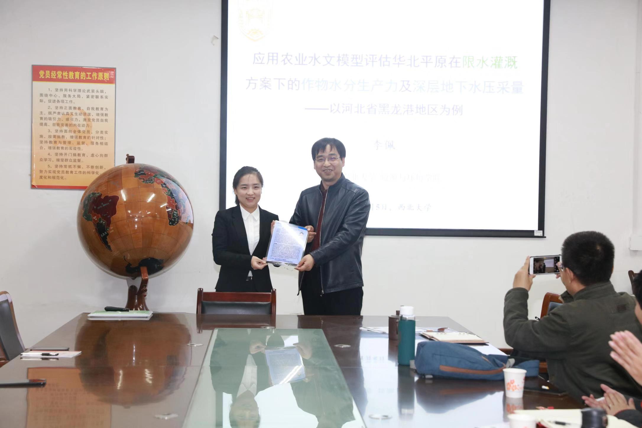 2019年11月5日上午9:00,由买球官方网站、陕西地表系统与环境承载力重点实验室主办的校庆117周年学术报告在买球官方网站二楼会议室成功举行。由中国农业大学生态学博士后李佩作题目为“应用农业水文模型评估华北平原在有限水灌溉方案下的作物水分生产力及深层地下水压采量——以河北省黑龙港地区为例”的报告。本次学术报告由宋进喜教授主持,买球官网师生积极参加。