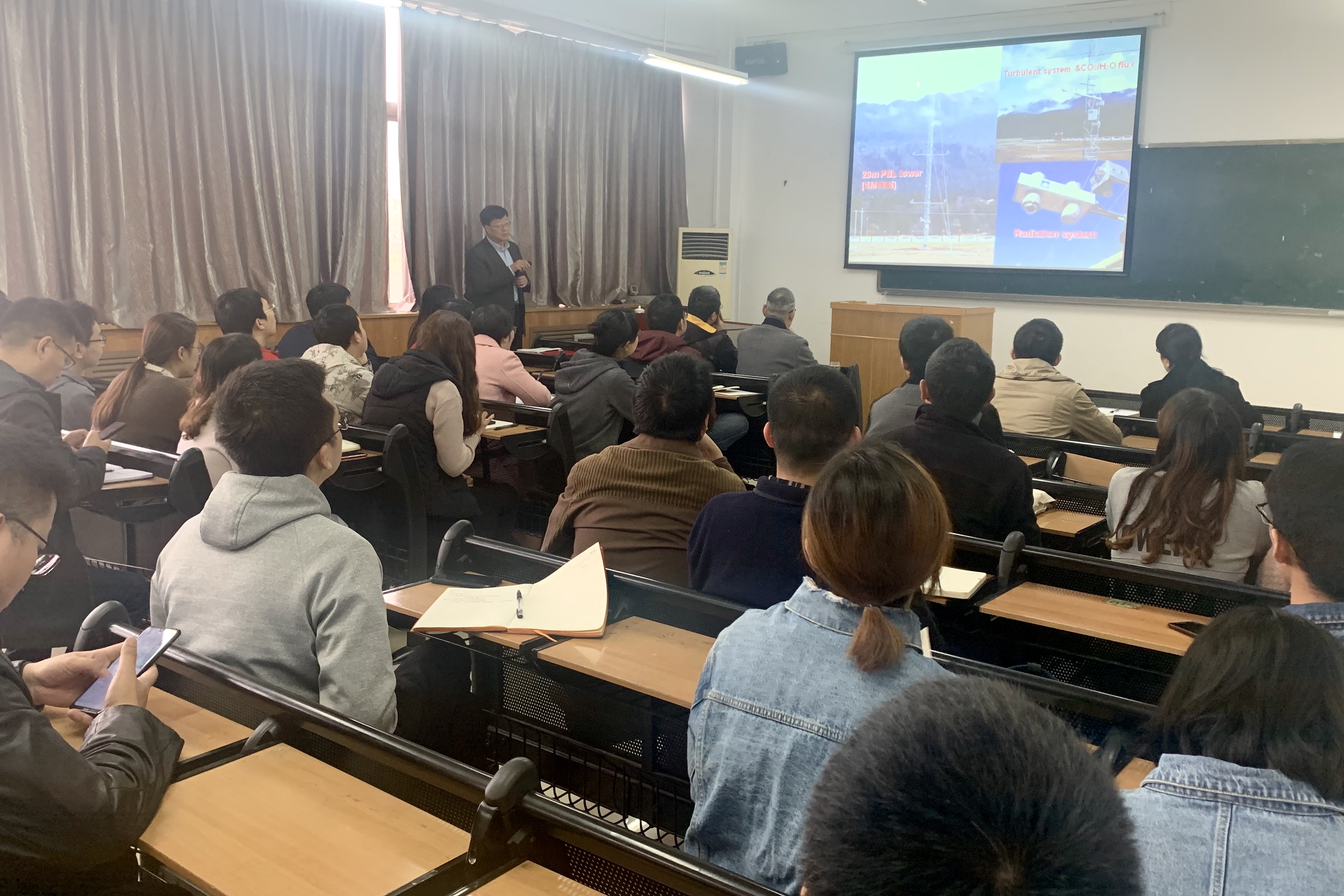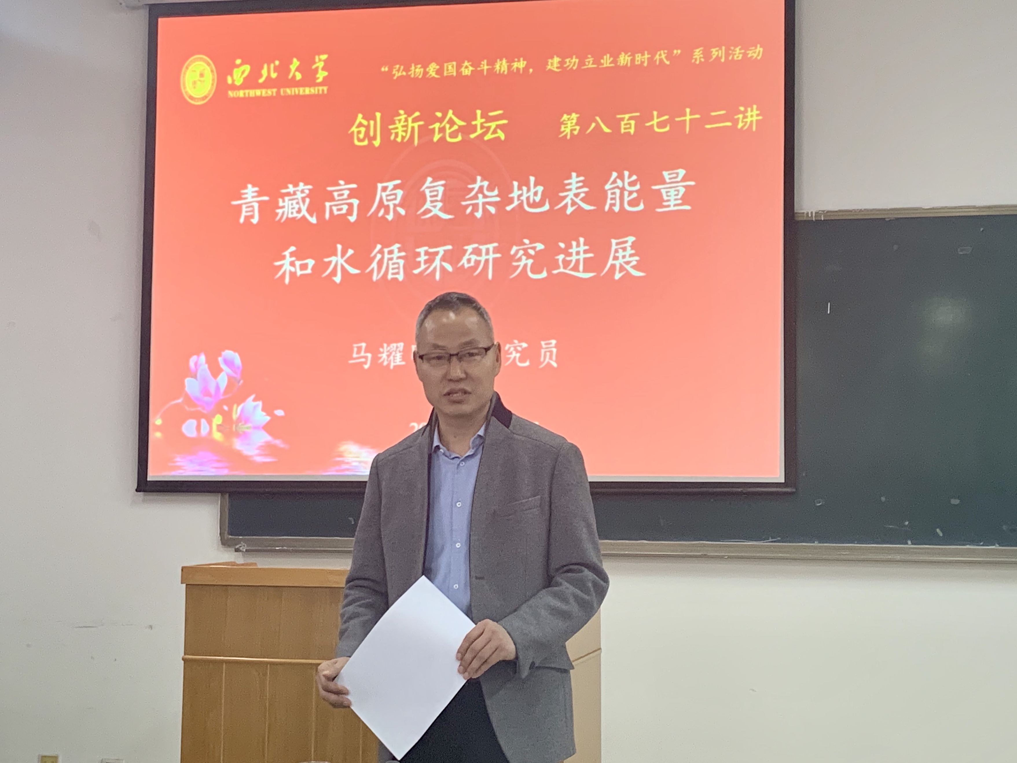 2019年11月5日上午10:00,由我校科技处、科协主办,买球官方网站承办的“买球官方网站创新论坛”第八百七十二讲在学院三楼多媒体教室举行。中国科学院特聘研究员、中国科学院大学岗位教授、中国科学院青藏高原研究所研究员、中科院珠穆朗玛大气与环境综合观测研究站站长马耀明研究员应邀为我校师生作了题为“青藏高原复杂地表能量和水循环研究进展”的报告。我校相关专业师生参加了本次报告会。本次报告由王宁练教授主持,买球官网师生积极参加。