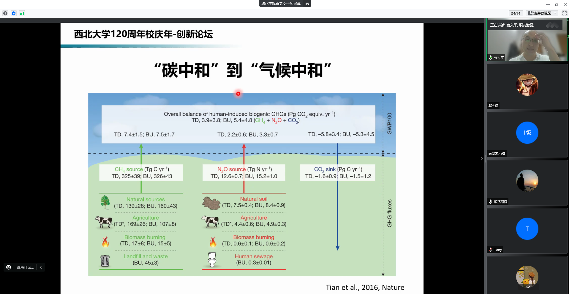 图2 袁文平教授介绍碳中和与气候中和的概念与内容区别