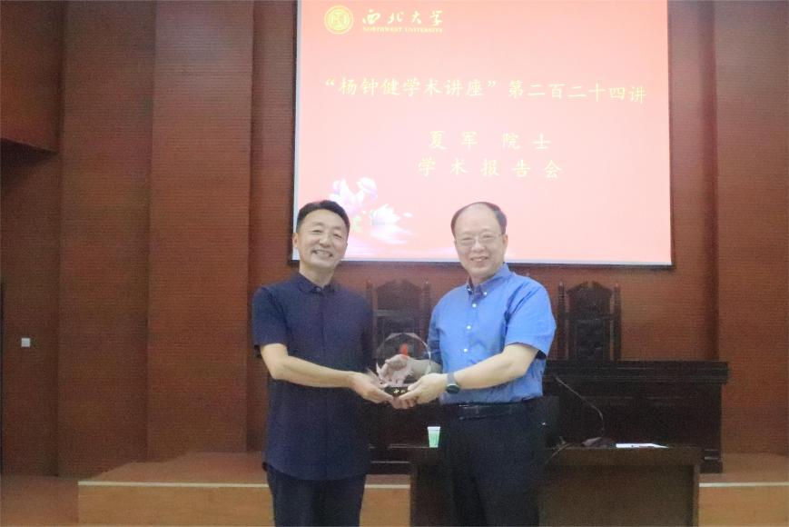 向夏军院士颁发“杨钟健学术讲座”纪念牌