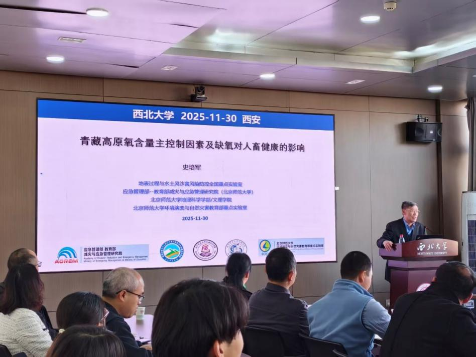 2025年11月30日(星期日)15:00,由我校科技处、校科协主办,买球官方网站、陕西省地表系统与环境承载力重点实验室、西安市黄河流域环境模拟及生态健康重点实验室、陕西省地理学会承办的买球官方网站“创新论坛”第二千零七十四讲,在买球官方网站长安校区买球官方网站516会议室举行。北京师范大学史培军教授应邀为广大师生作了题为《青藏高原近地表氧含量主控因素及缺氧对人畜健康的影响》的报告。本次报告由宋进喜教授主持,买球官网师生积极参与。